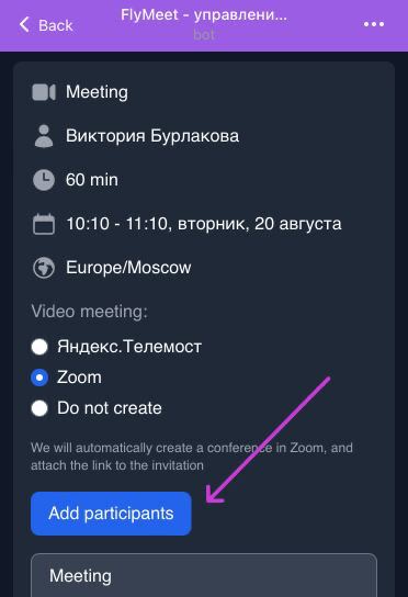 2. Enter **@flymeetbot** and space