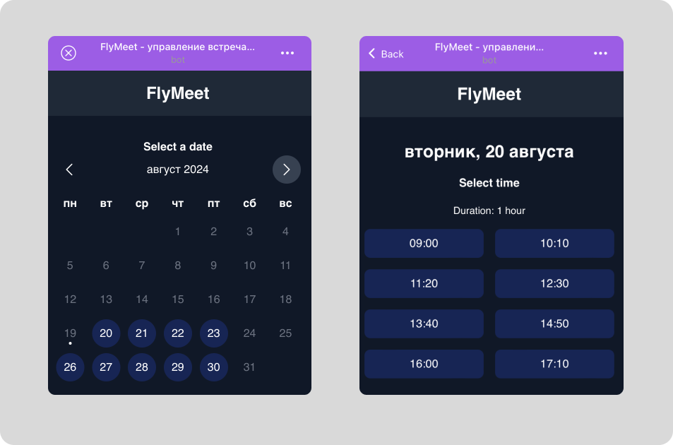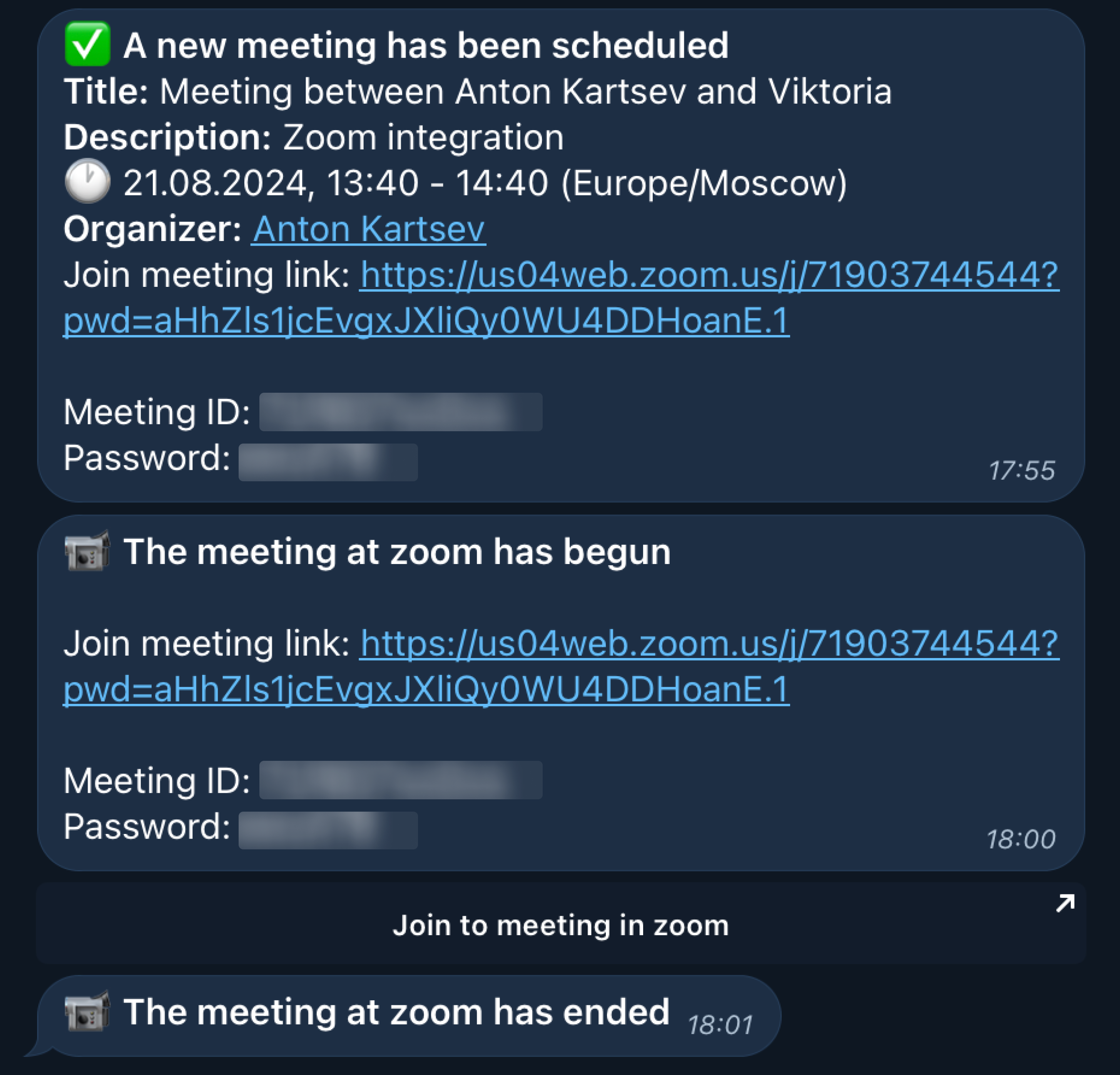 When the meeting is planned, all the members receive notifications (via bot or e-mail).&#x20;