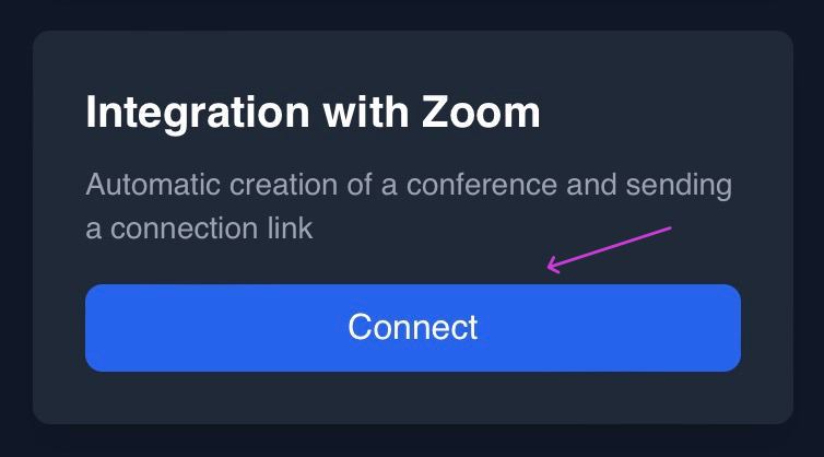 * At the very bottom, find the **integration with Zoom** and click **"Connect"**