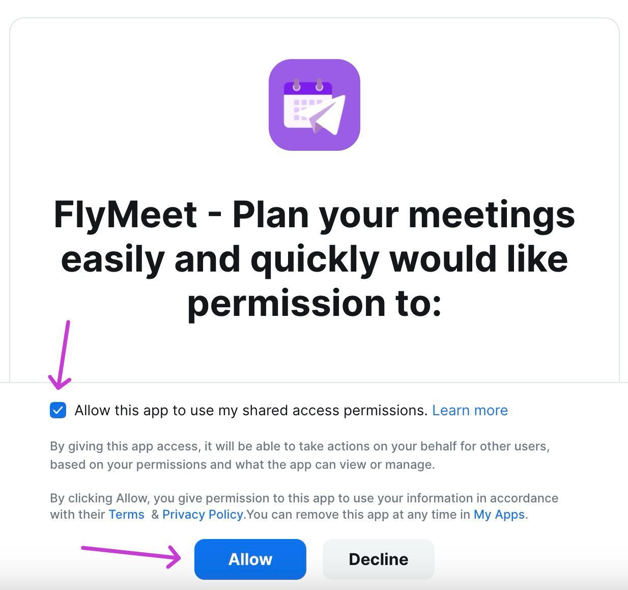 * Click **"Allow this app to use my shared access permissions"** and then the button **"Allow"**